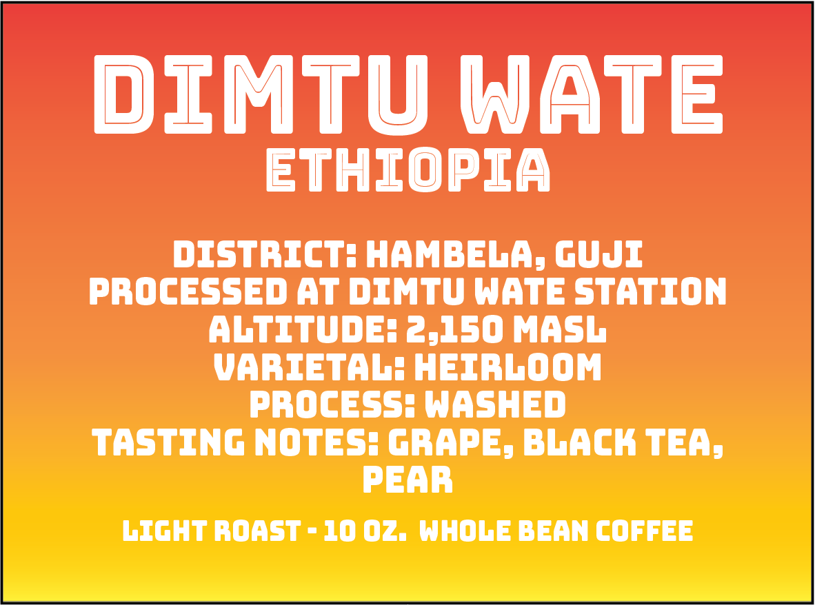 This Grade 1 washed coffee comes via the Dimtu Wate Station in the Hambela district of Guji, with coffee cherries grown at a whopping 2,150 meters above sea level. The heirloom varietals lend to tasting notes of grape, black tea, and pear. This light roast coffee presents with a light and smooth body with flavors swimming through it. Available whole bean or ground.