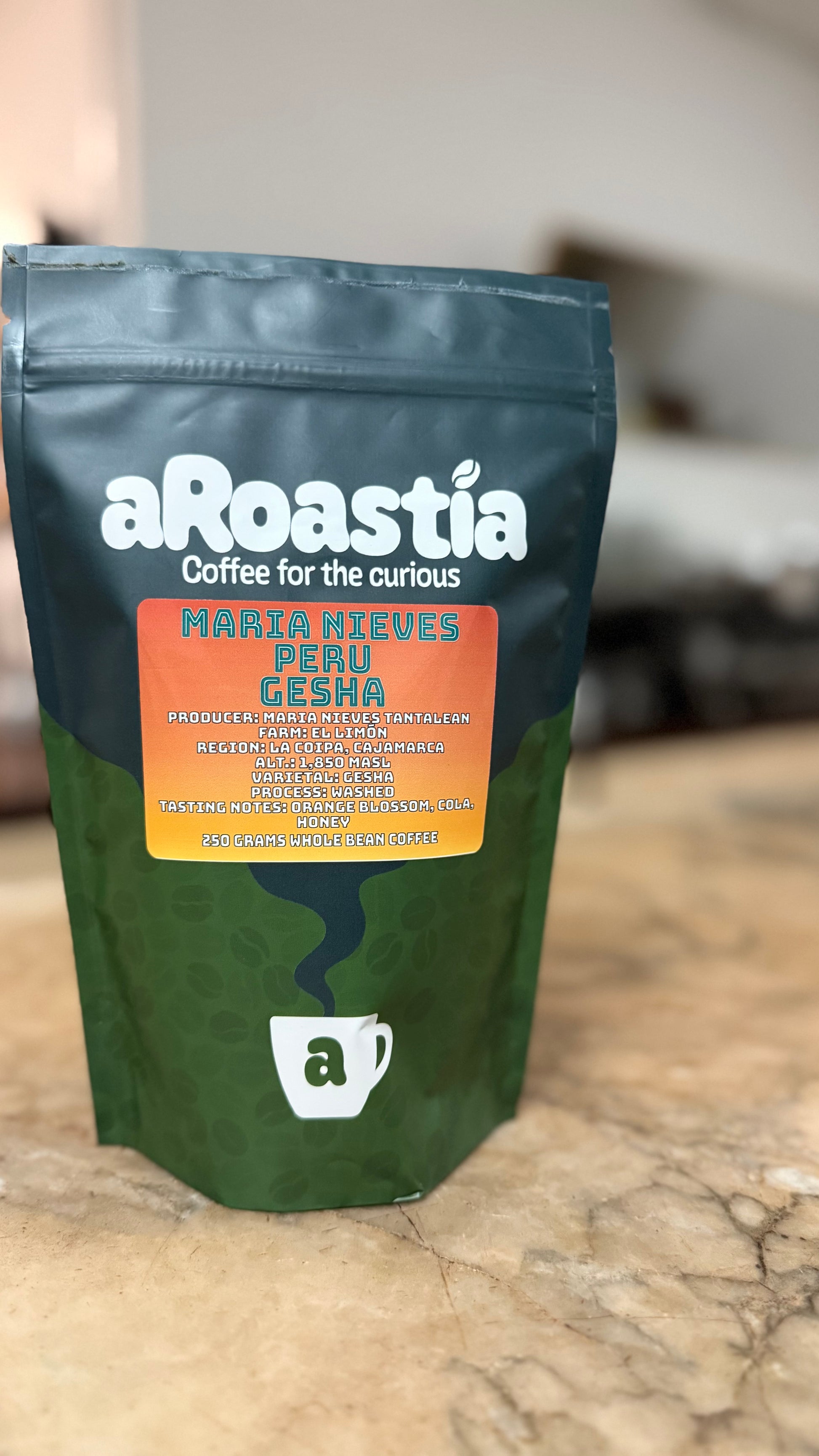 This coffee comes from renowned producer Maria Nieves Tantalean at the farm El Limón in Cajamarca, Peru. It is a washed process coffee that was grown 1,850 meters above sea level. Tasting notes include orange blossom, cola, and honey.